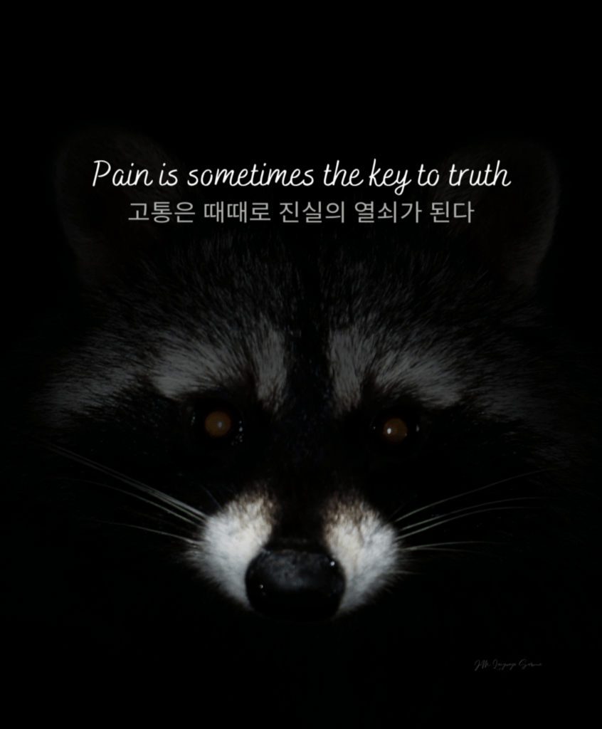 Even in the middle of pain, if you keep your mind together and observe your mind one step apart, you can see one thing clearly. Truth is necessary as an indicator for living a true life, but pain is essential to go down that path.