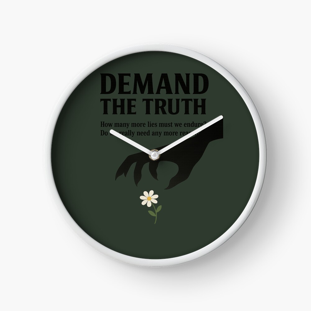👉 Shop Now on Redbubble (https://www.redbubble.com/i/clock/Demand-The-Truth-Speak-Up-Against-Lies-by-lydianish/174571669.7PFC0?asc=u)